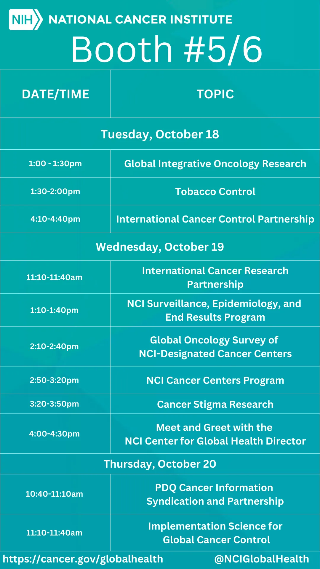 National Cancer Institute (NCI) is part of the NIH, one of 11 agencies that are part of the U.S. Department of Health and Human Services. NCI coordinates the U.S. National Cancer Program, which conducts and supports research, training, health information dissemination and other activities related to the cause, prevention, diagnosis, and treatment of cancer; cancer survivorship; and the continuing care of cancer patients and their families. NCI, Center for Global Health (NCI/CGH) supports the NCI mission by advancing global cancer research, and by coordinating NCI engagement in global cancer control. NCI/CGH has four strategic goals: (1) support innovative, impactful research that addresses key scientific issues in global cancer control and/or leverages unique scientific opportunities afforded by global collaboration; (2) support global cancer research training, particularly in low- and middle-income countries, that enables impactful global scientific collaboration; (3) promote the integration of current scientific knowledge in global cancer control; and (4) represent the NCI and promote its engagement with key partners in global cancer control.